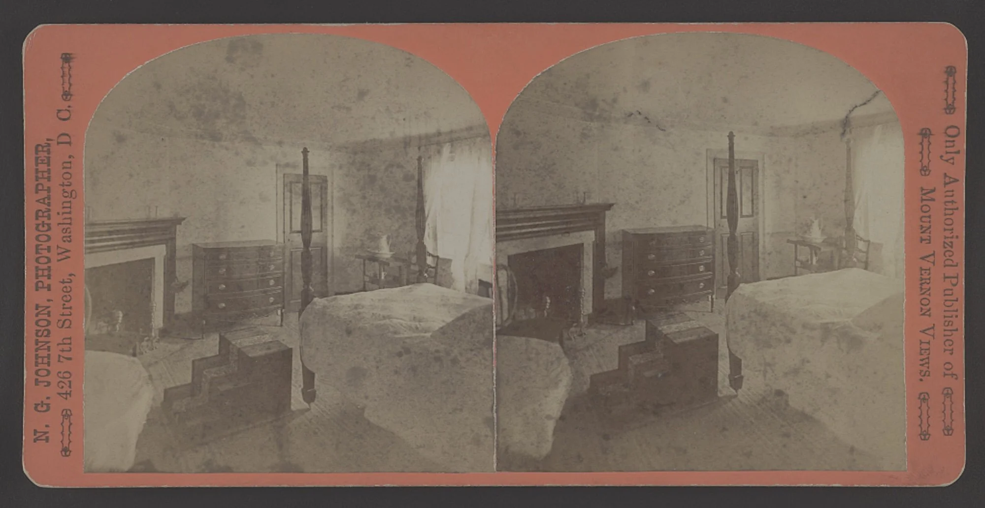 [Figure 29. Photograph of the Maryland Room at Mount Vernon, where Eleanor Curtis, George Washington’s adopted daughter, stayed. The bed steps that she used, which are similar to the ones at the Hermann-Grima House, can be seen next to her bed in the photo. Courtesy of the Library of Congress.]