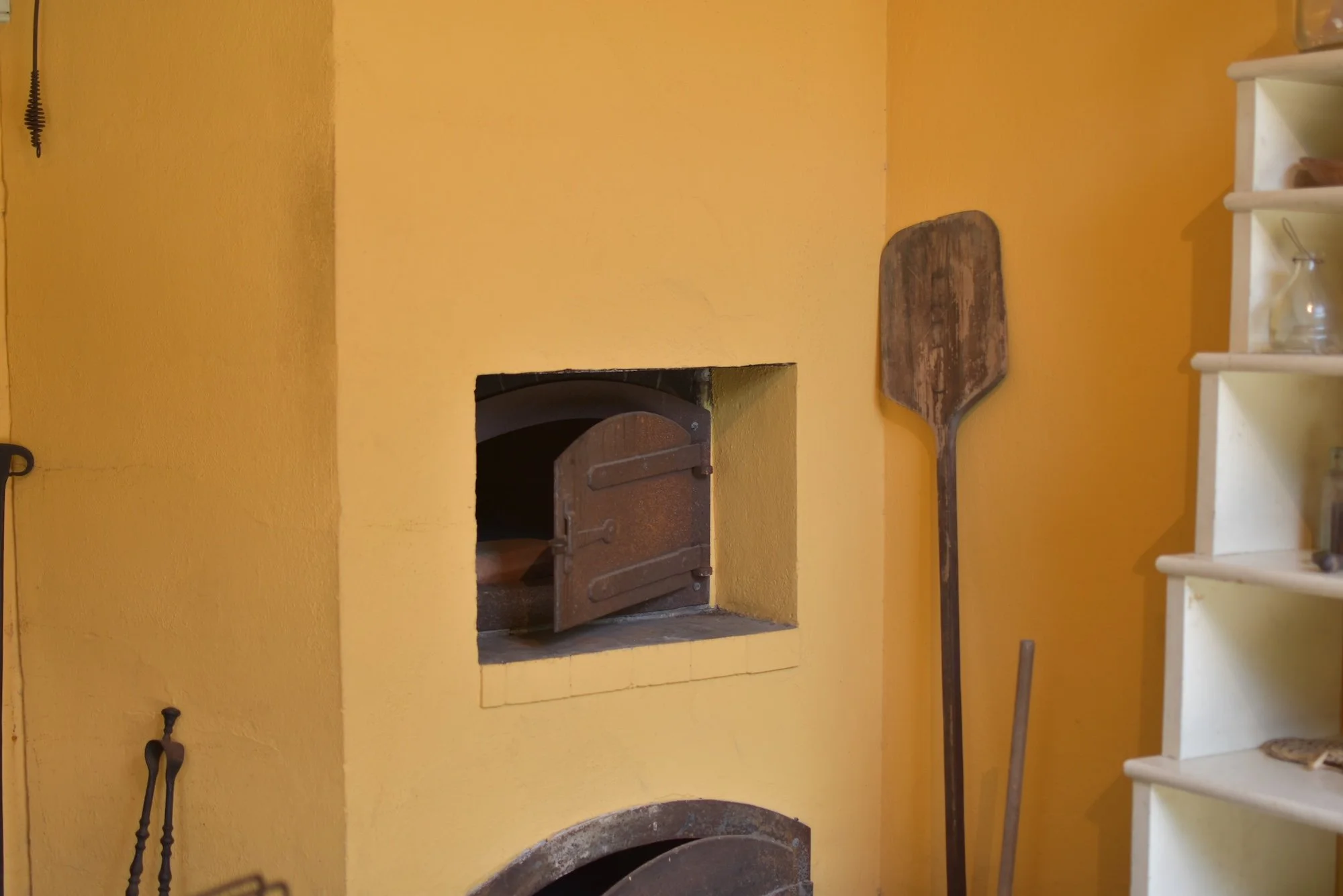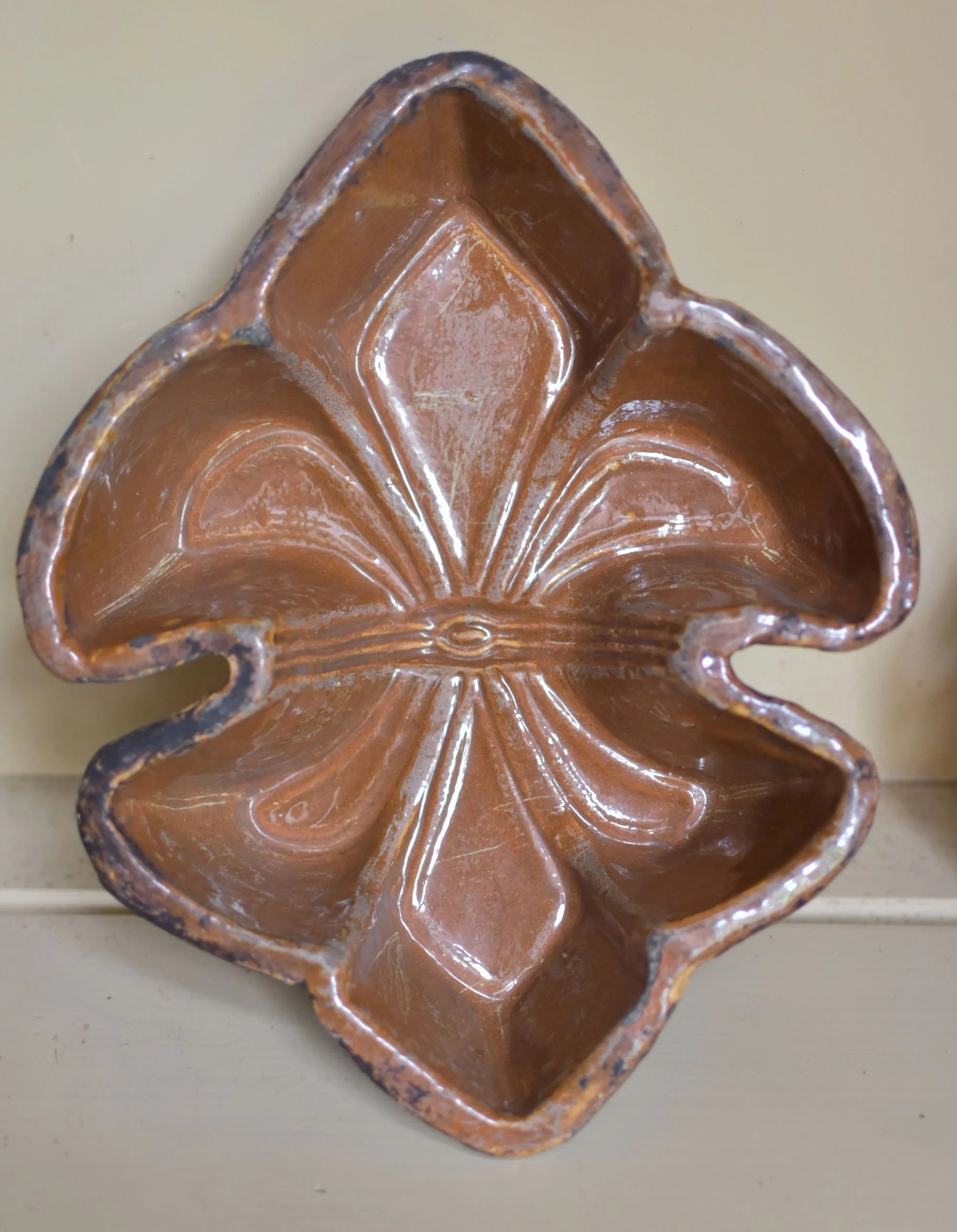 [Figure 2. The beehive oven in the Hermann-Grima House’s open-hearth kitchen is where breads and cakes would have been baked, possibly in molds like the redware fleur-de-lys.]