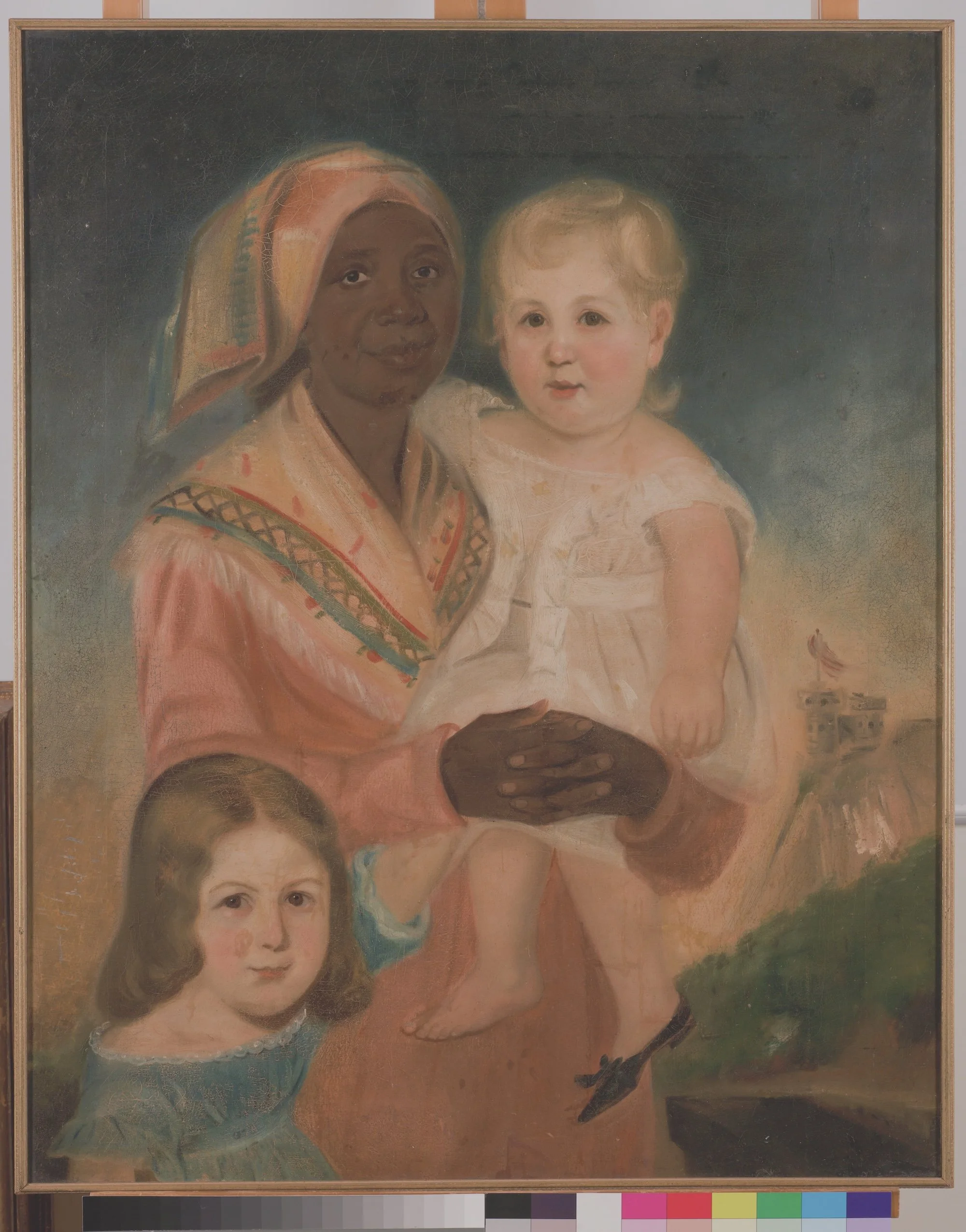 [Figure 19. Butler children and nurse, oil on canvas, painted in New Orleans between 1830 and 1850, depicts a Black, likely enslaved, female nurse with two white children from the Butler family. Nurses like this woman served wealthy families in New Orleans and would have been the ones to feed, bathe, and clothe children. An enslaved nurse presumably was the primary user of the Hermann-Grima House highchair. Historic New Orleans Collection, gift of Mrs. Virginia Bruns Marshall, 2017.0271.4.]