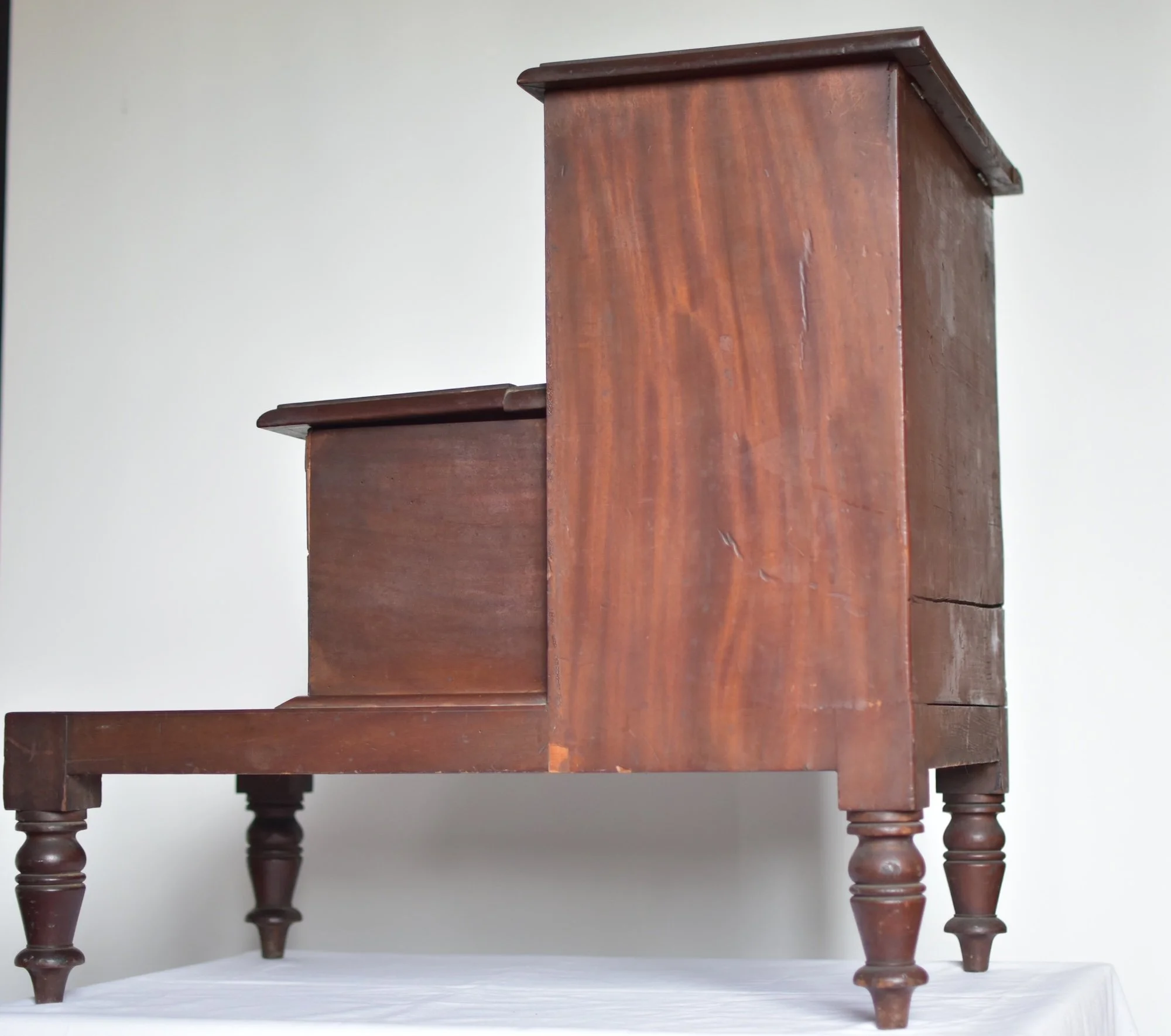 [Figure 28. Bed steps located next to the bed in the main bedroom of the Hermann-Grima House. The middle step pulls out to reveal a large hole in which a chamber pot would have been kept. The top step opens to become a small storage area.]
