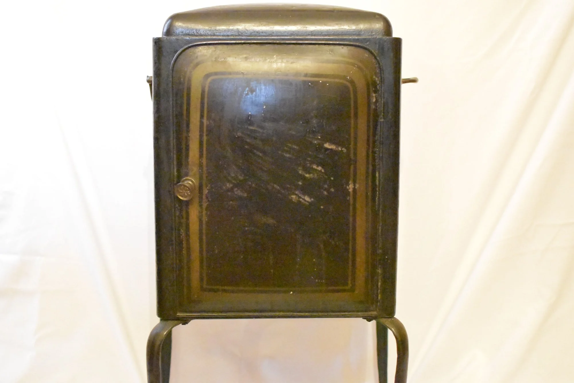 [Figure 8. Plate warmer in context in front of Hermann-Grima House fireplace.]